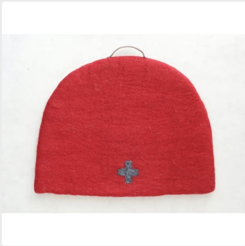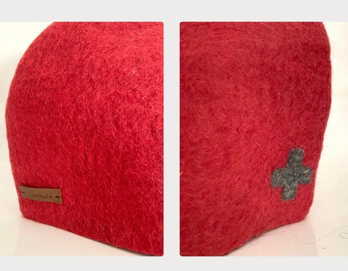 無染色の天然素材を生かしたオリジナル雑貨を制作しているundyed+(アンダイドプラス)のフェルトのティーコゼです。