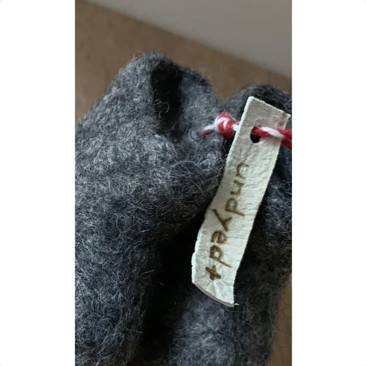 無染色の天然素材を生かしたオリジナル雑貨を制作しているundyed+(アンダイドプラス)のフェルトの小さなブーツ。