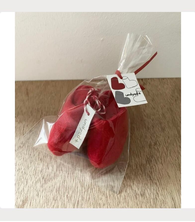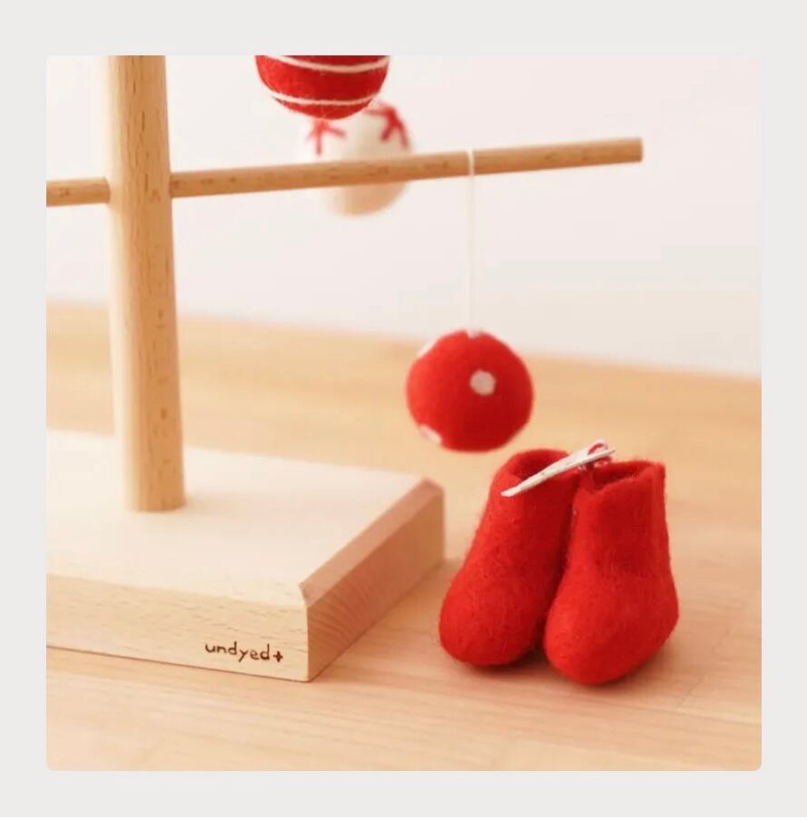 無染色の天然素材を生かしたオリジナル雑貨を制作しているundyed+(アンダイドプラス)のフェルトの小さなブーツ。
