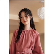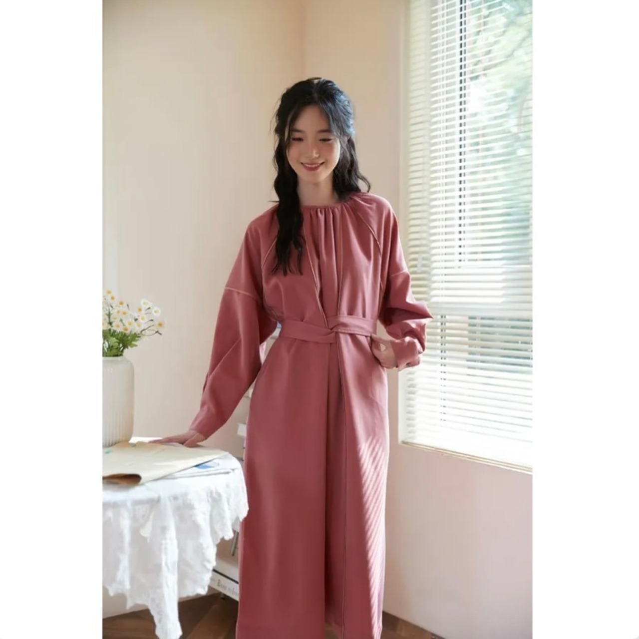 ベルト付きギャザーワンピース(ラズベリー)