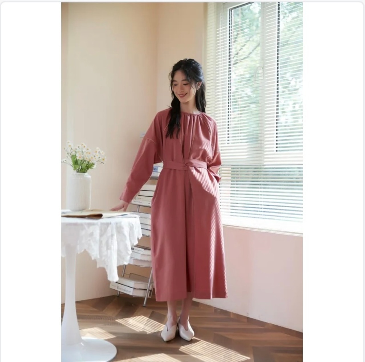 ベルトは前後で様々な結び方ができるので、アレンジ次第でいろんなスタイルを楽しむことができます。ワンピースをベルトでウエストマークし、ヒールのあるパンプスやストラップサンダルを合わせてエレガントなオケージョンルックもできますし、シンプルなアクセサリーやクラッチバッグをプラスして、上品な印象も楽しめます。