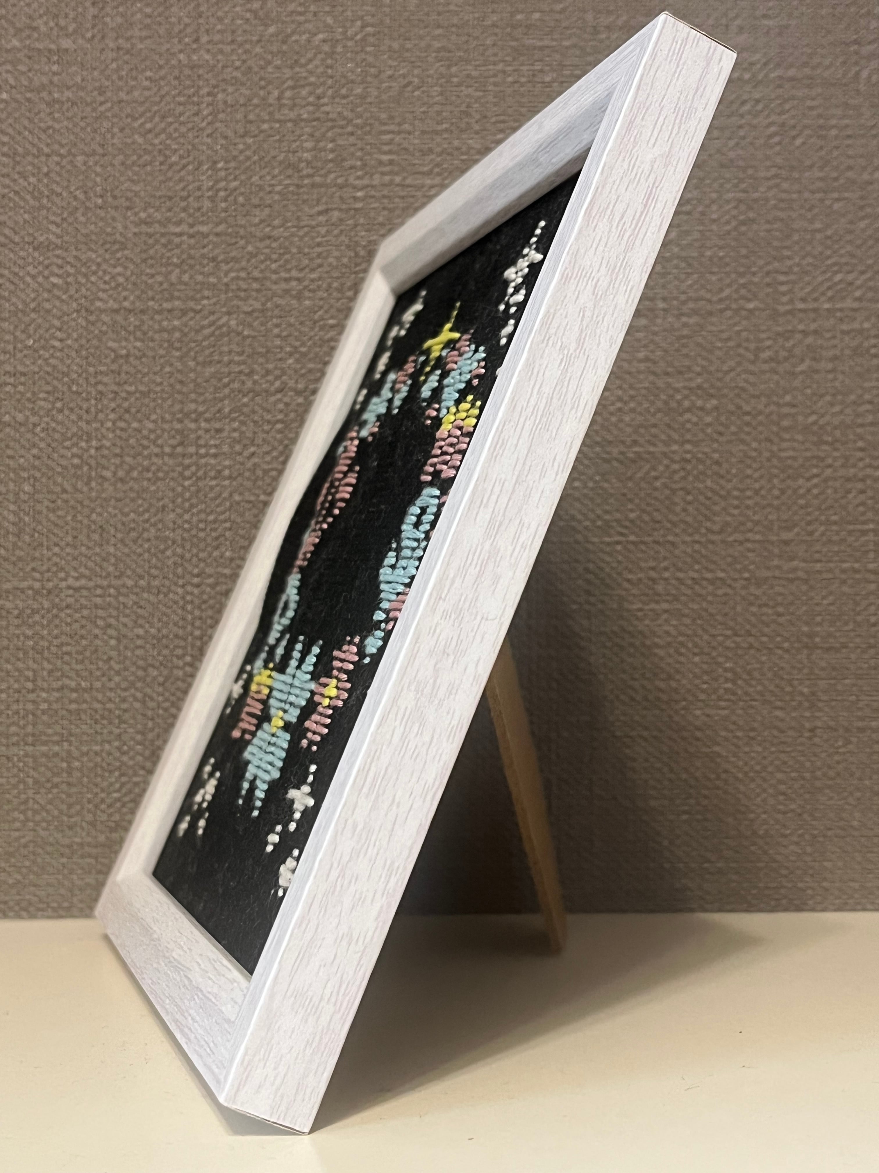 綿の生地に綿の糸でひと針ひと針丁寧に刺しています。手仕事の素朴な風合いをお楽しみいただけると嬉しいです。